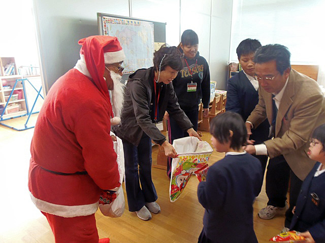 逸見サンタさん来校!「一円玉募金」にも協力しました